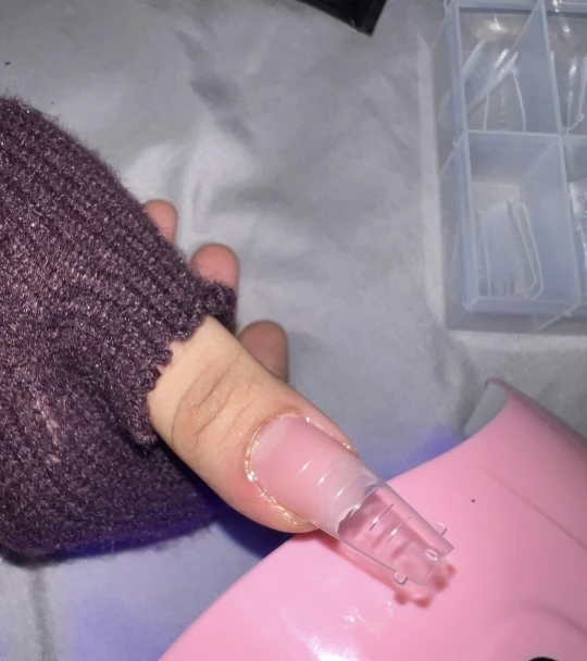 6.Put the nail form with poly nail gel to your nail. Cured by UV/LED lamp.