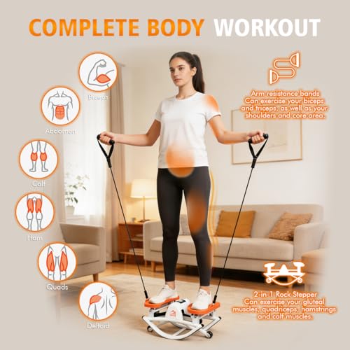 Rocking Steppers for Exercise at Home, the Rock Stepper Side to Side Stepper with 3D Motion & Resistance Bands for Full Body Cardio Workout, Quiet Low-Impact Stair Stepper, 380LBS Loading Capacity